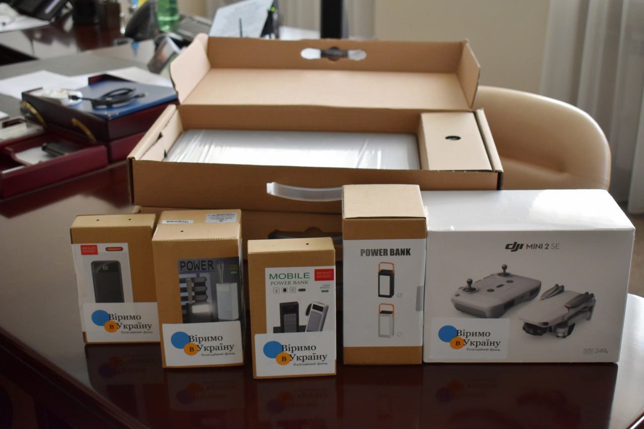 У Волинській обласній адміністрації вручили військовим 100-ї бригади ТрО необхідну техніку. Це – ноутбуки, повербанки, квадрокоптер «Mavic», зарядна станція та сонячна панель до неї.
