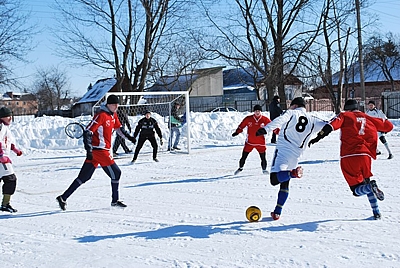 На фото: сніговий футбол.
