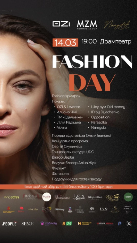 Модельна агенція Марини Занюк «MZM» організовує благодійний івент Fashion Day у Волинському академічному обласному музично-драматичному театрі імені Тараса Шевченка.