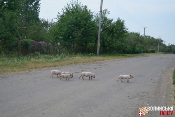 Ось на таких «перехожих» ми мало не наїхали (у буквальному сенсі), курсуючи сільськими дорогами Волині під час недавнього відрядження. Поросята взяли курс на сусідське подвір’я і – «нехай увесь світ зачекає»…
