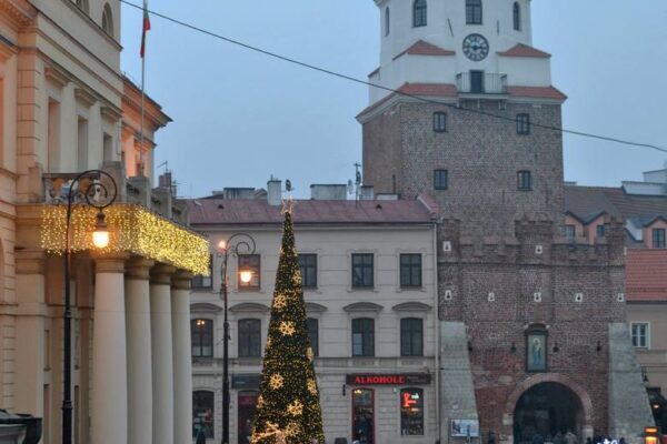 Як і планувалося, 6 грудня о 15.00 у центрі Любліна спалахнула святковими вогнями різдвяно-новорічна ялинка. 12-метрову красуню змонтували напередодні зі штучних матеріалів, а в суботу працівники комунальних служб завершили підключення ілюмінації.