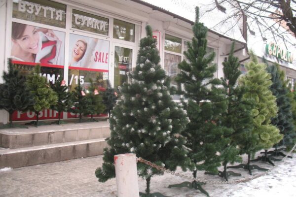 Навпроти старого базару у місті Луцьку йде жвава торгівля ялинками та іграшками.