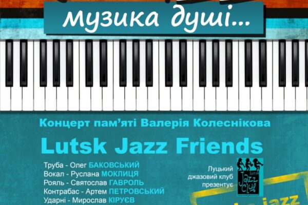 «Луцький джазовий клуб» за підтримки Волинської обласної філармонії проводить концерт «Джаз – музика душі»! Він відбудеться в Луцьку 6 березня 2015 р. о 19.00 в обласному театрі ляльок.