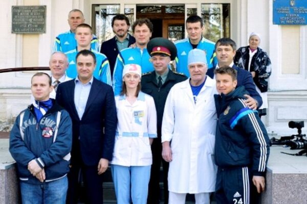 Артем Федецький, Євген Хачеріді і Анатолій Тимощук разом із іншими гравцями збірної України з футболу 25 березня ц. р. відвідали поранених бійців.