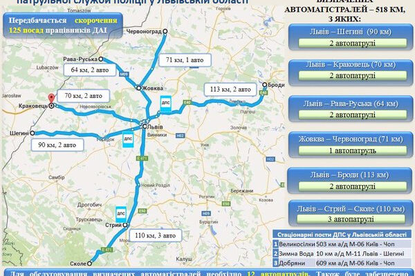 З 25 січня ц. р. на Львівщині перестали існувати підрозділи Державтоінспекції на стаціонарних постах та в складі патрулів. Але волинським водіям найбільше сподобається інше нововведення керівника Нацполіції України Хатії Деканоїдзе: карта-схема розташування патрульних машин поліції складена таким чином, що на шляху від Луцька до Львова не буде цілодобово чергувати жодна патрульна машина!