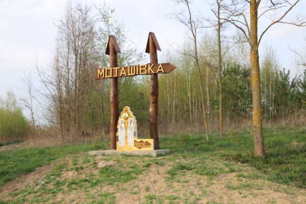 Моташівка – чи не найцікавіше село Луцького р-ну. Бо тут, за переписом населення, проживає лише 25 людей! Але унікальність цього крихітного поселення полягає ще й у тому, що на в’їзді до нього з боку лісу місцеві умільці встановили незвичайну споруду – святих на фоні фрагментів ремесла пасічників і написом «Бджілці-трудівниці!».