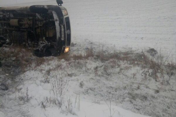 Мікроавтобус Volkswagen LT 45 через ожеледицю на дорозі злетів у кювет.