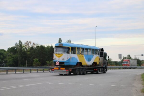 Незвичайна автоколона пізно ввечері прибула в столицю з боку Житомира. 7 вантажівок TIR везли… трамваї.