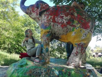 У Луцьку повним ходом триває реставрація скульптури слоника в ботанічному саду.
