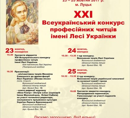 Для 23-25 жовтня у Луцьку буде проходити заключний етап ХХІ Всеукраїнського конкурсу професійних читців імені Лесі Українки.