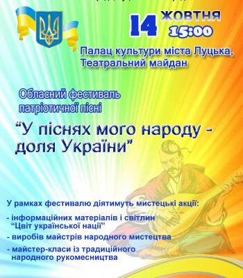 14 жовтня на Театральному майдані Луцька відбудеться обласний фестиваль патріотичної пісні.