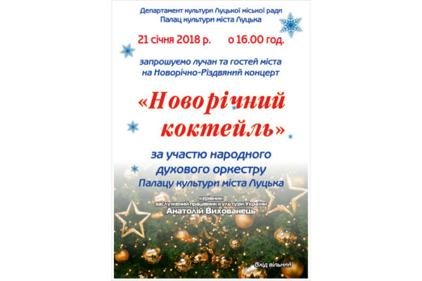 Учасники народного аматорського духового оркестру Палацу культури підготували святкову програму «Новорічний коктейль» для лучан та гостей Луцька.