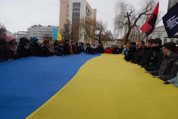 22 січня у центрі Луцька провели акцію на честь Дня Соборності та Свободи.