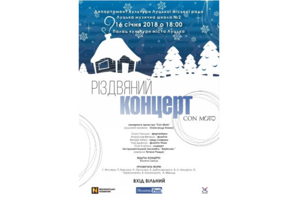 Лучан та гостей міста запрошують відвідати Різдвяний концерт камерного оркестру «Con Moto» Луцької музичної школи №2 (керівник Олександр Хомик).