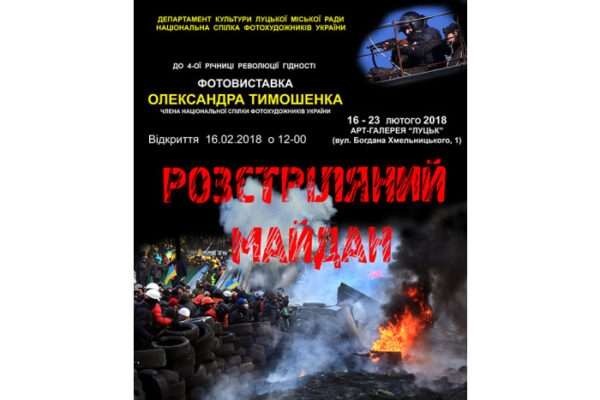 Протягом 16-23 лютого 2018 року в арт-галереї «Луцьк» (вул.Богдана Хмельницького,1) експонуватиметься персональна виставка робіт київського фотохудожника Олександра Тимошенка «Розстріляний Майдан».