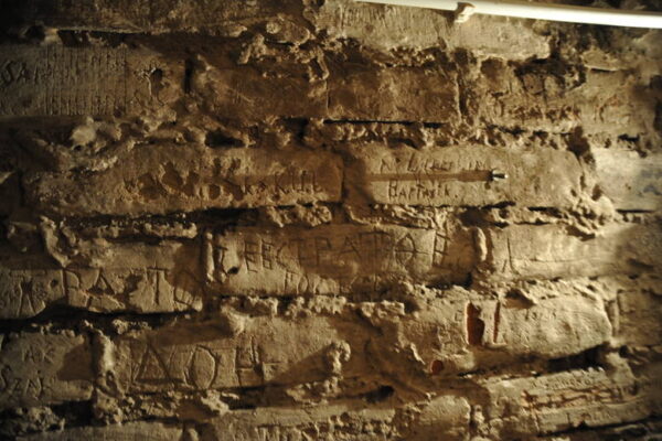 Документальне свідчення минулих репресій у вигляді написів на стінах колишніх тюремних камер.