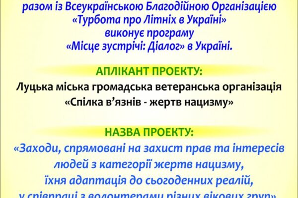 Луцька міська громадська ветеранська організація «Спілка в’язнів – жертв нацизму» долучилася до нового проекту