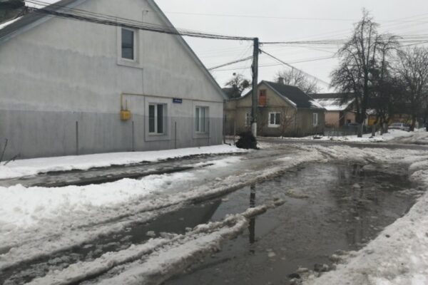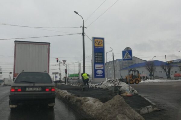 Поміж кучугур снігу 23 грудня снують робітники, котрі намагаються навіть в екстремальних умовах зими вкласти на тротуарі бруківку.