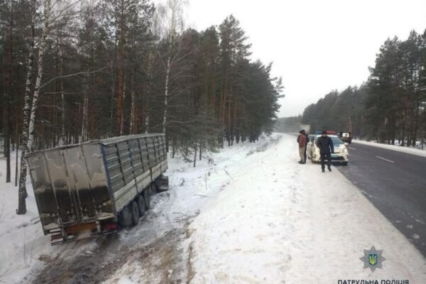 Учора, близько 7год ранку, патрульні отримали інформацію, що на А/Д М-07 Київ-Ковель-Ягодин 379км + 500м фура злетіла з дороги.