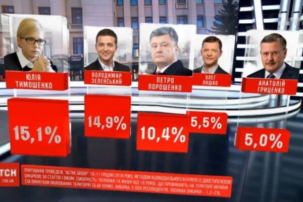 Дослідницька компанія «Active Group» оприлюднила результати соціологічного дослідження, яке проводилось з 18 по 22 січня 2019 р. Підсумки оприлюднив наближений до Ігоря Коломойського телеканал «1+1», але головне в іншому: визначився квінтет лідерів із… багатьма невідомими.