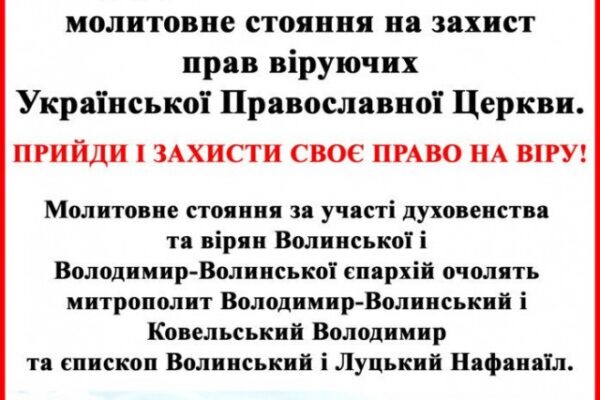 У м. Луцьку в останній день зими відбудеться загальнообласне «молитовне стояння». В такий спосіб ієрархи УПЦ (МП), котрі не бажають долучатися до новоствореної Православної церкви України, разом із духовенством та парафіянами будуть вимагати від виконавчої влади Волині забезпечити «захист прав віруючих Української православної церкви».