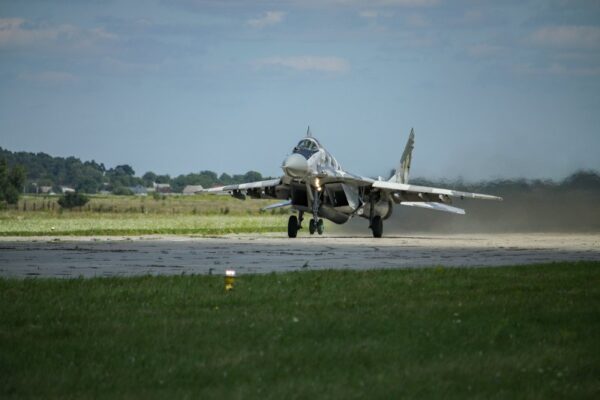 Винищувачі МиГ-29 та МиГ-29УБ в небі Волині здійснили навчальні атаки умовного противника. В умовах російсько-української війни на Донбасі поняття «умовний противник» не розшифровується нашими авіаторами, але здогадатися не важко…