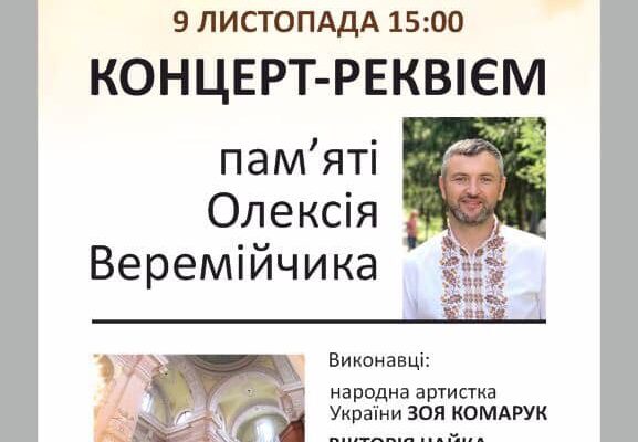 У Луцьку відбудеться концерт-реквієм пам’яті загиблого директора департаменту сім’ї, молоді та спорту міської ради Олексія Веремійчика.
