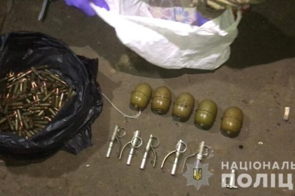 Учора в підвальному приміщенні одного із будинків в обласному центрі співробітники кримінальної поліції виявили поліетиленовий пакунок із п’ятьма гранатами та понад 350 патронами різноманітного калібру.