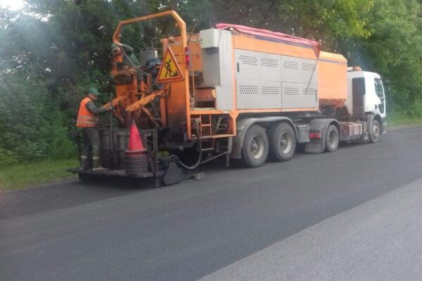 На замовлення Служби автомобільних доріг у Волинській області на автошляху Н-22 Устилуг – Луцьк – Рівне на ділянці між населеними пунктами Дерно і Ставок підрядне підприємство ТзОВ “Унідор Сервіс” виконує роботи з поточного дрібного ремонту, які передбачають влаштування тонкошарового покриття дорожнього одягу з литої емульсійно-мінеральної суміші типу Сларі-Сіл.