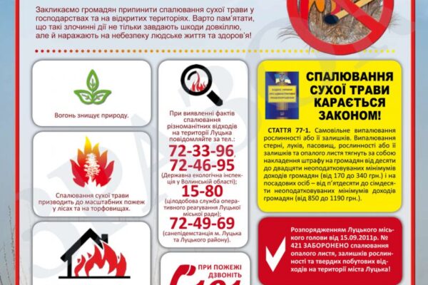 Працівники УДСНС у Волинській області закликають громадян: не підпалюйте суху траву!
