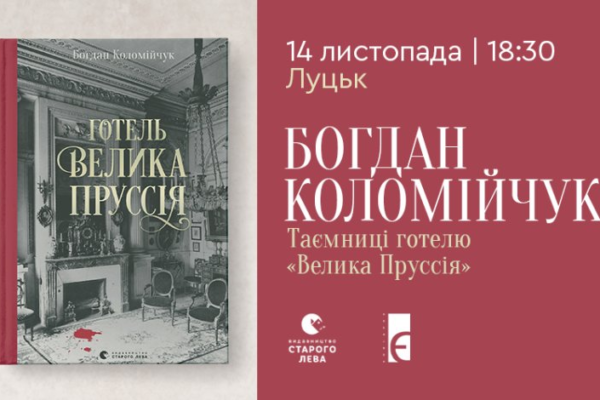 Книгарня “Є” запрошує на презентацію ретро-детективу українського письменника Богдана Коломійчука “Готель “Велика Пруссія”.