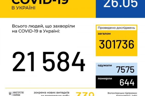 За даними Волинського обласного лабораторного центру за останню добу на Волині зареєстровано 22 нових випадків захворювання на COVID-19: м. Ковелі – 7 та м. Луцьку – 4, три випадки зареєстровано в Любомльському районі, по два – в Камінь-Каширському та Володимир – Волинському районах, по 1 випадку – в Ковельському, Луцькому, Ратнівському та Турійському районах. Одужало 12 осіб. Один випадок хвороби завершився летально (м.Ковель).