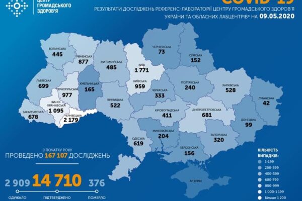 В Україні з початку епідемії вже підтвердили 14 710 випадків коронавірусу.