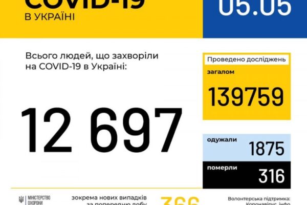 В Україні зафіксовано 12697 випадків коронавірусної хвороби COVID-19.