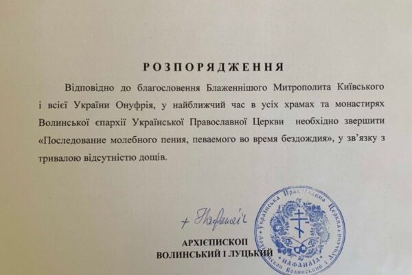 У всіх храмах та монастирях Волинської єпархії помоляться про дарування дощу.