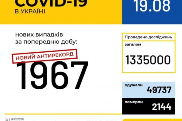 В Україні зафіксовано 1967 нових випадків коронавірусної хвороби COVID-19 — це антирекорд з кількості нових хворих за добу.