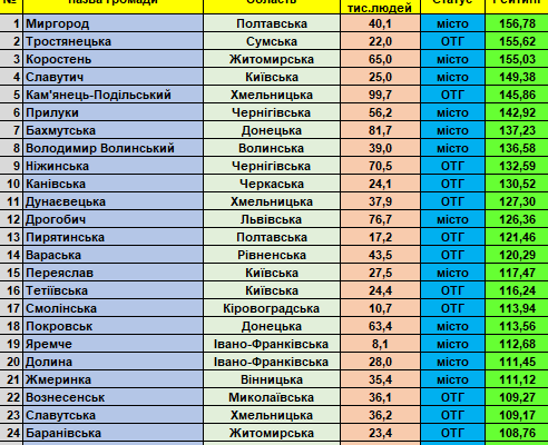 Фондом «Регіональний центр економічних досліджень та підтримки бізнесу» сформовано черговий рейтинг інституційної спроможності і сталого розвитку малих та середніх громад України. Загалом оцінено 1540 громад.