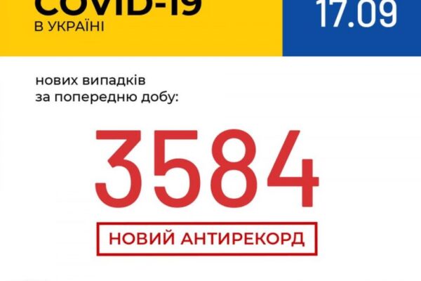 17 вересня (станом на 9:00) в Україні -,166 244 лабораторно підтверджені випадки COVID-19, із них 3 400 летальних, 73 913 пацієнтів одужало.