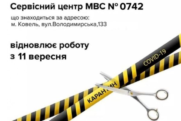 11 вересня у м. Ковель відновлює свою роботу сервісний центр МВС № 0742.