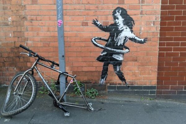 Нова робота представляє собою зображення дівчинки, яка крутить замість обруча колесо велосипеда.