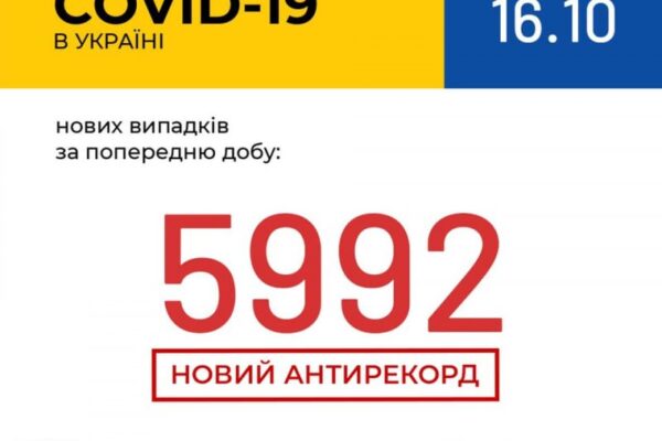 В Україні зафіксовано 5 992 нових випадки коронавірусної хвороби COVID-19 — це антирекорд кількості нових хворих за добу.