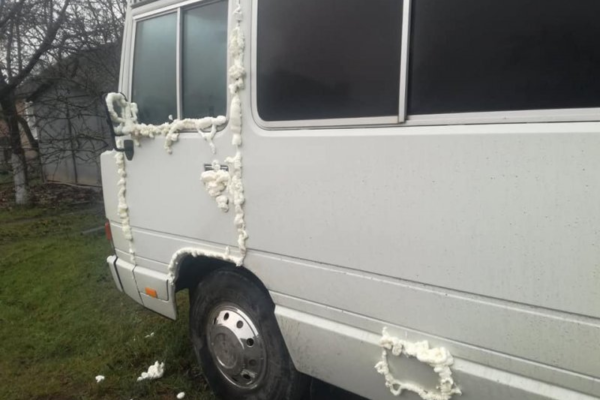 У Ківерцях автобус, яким здійснюють ритуальні перевезення, залили монтажною піною.