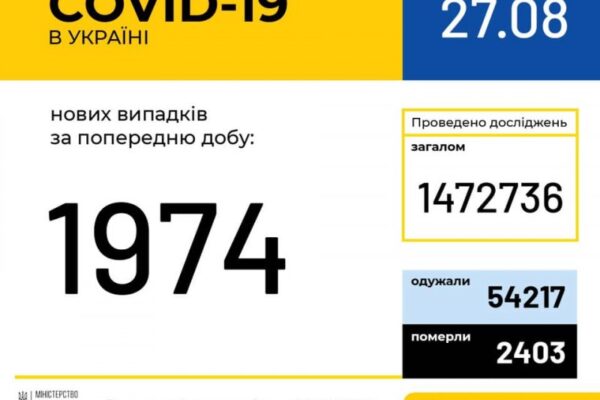 В Україні зафіксовано 1974 нові випадки коронавірусної хвороби COVID-19.