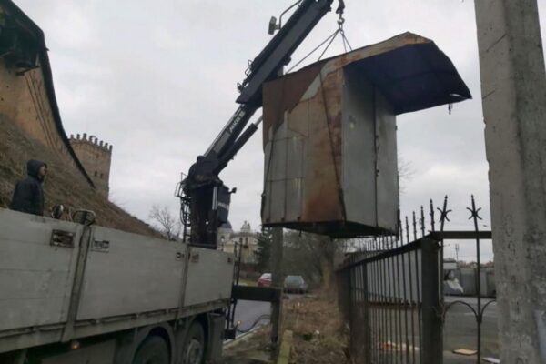 Роботи по очищенню території прилеглої до Луцького замку від незаконних тимчасових споруд та конструкцій ринку тривають.
