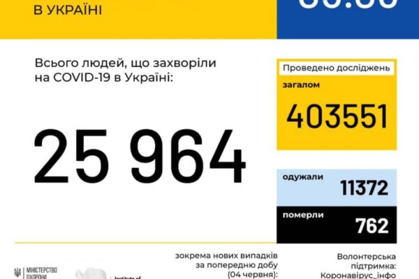 В Україні зафіксовано 25964 випадки коронавірусної хвороби COVID-19.