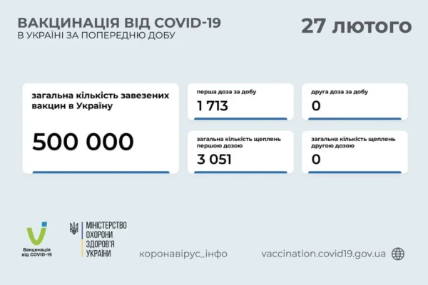 8 172 нових випадків коронавірусної хвороби COVID-19 зафіксовано в Україні станом на 27 лютого 2021 року.