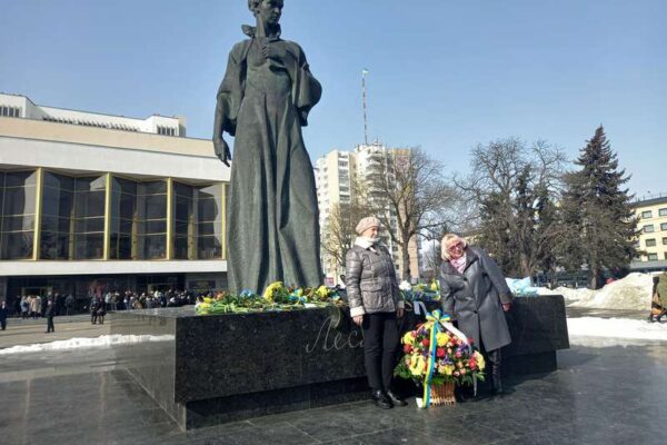 Сотні людей зібралися на Театральній площі у Луцьку поблизу пам’ятника Лесі Українці.