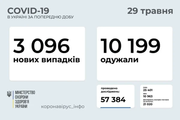 Станом на ранок суботи, 29 травня, в Україні офіційно підтверджено 2 199 769 випадків коронавірусної інфекції.