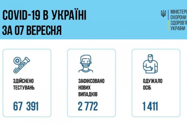 За добу 7 вересня 2021 року в Україні зафіксовано 2 772 нові підтверджені випадки коронавірусної хвороби COVID-19 (з них дітей – 254, медпрацівників – 46).