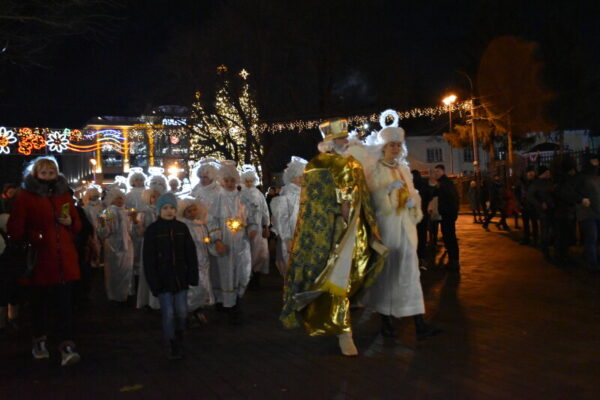 Головна ялинка м. Луцька засяяла тисячами золотих вогнів ввечері 19 грудня, на свято Чудотворця Миколая, небесного покровителя обласного центру Волині.